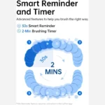 - زمانسنج هوشمند: تایمر داخلی ۲ دقیقهای با اعلان ۳۰ ثانیهای برای یادآوری تغییر محل مسواک زدن در فکها.